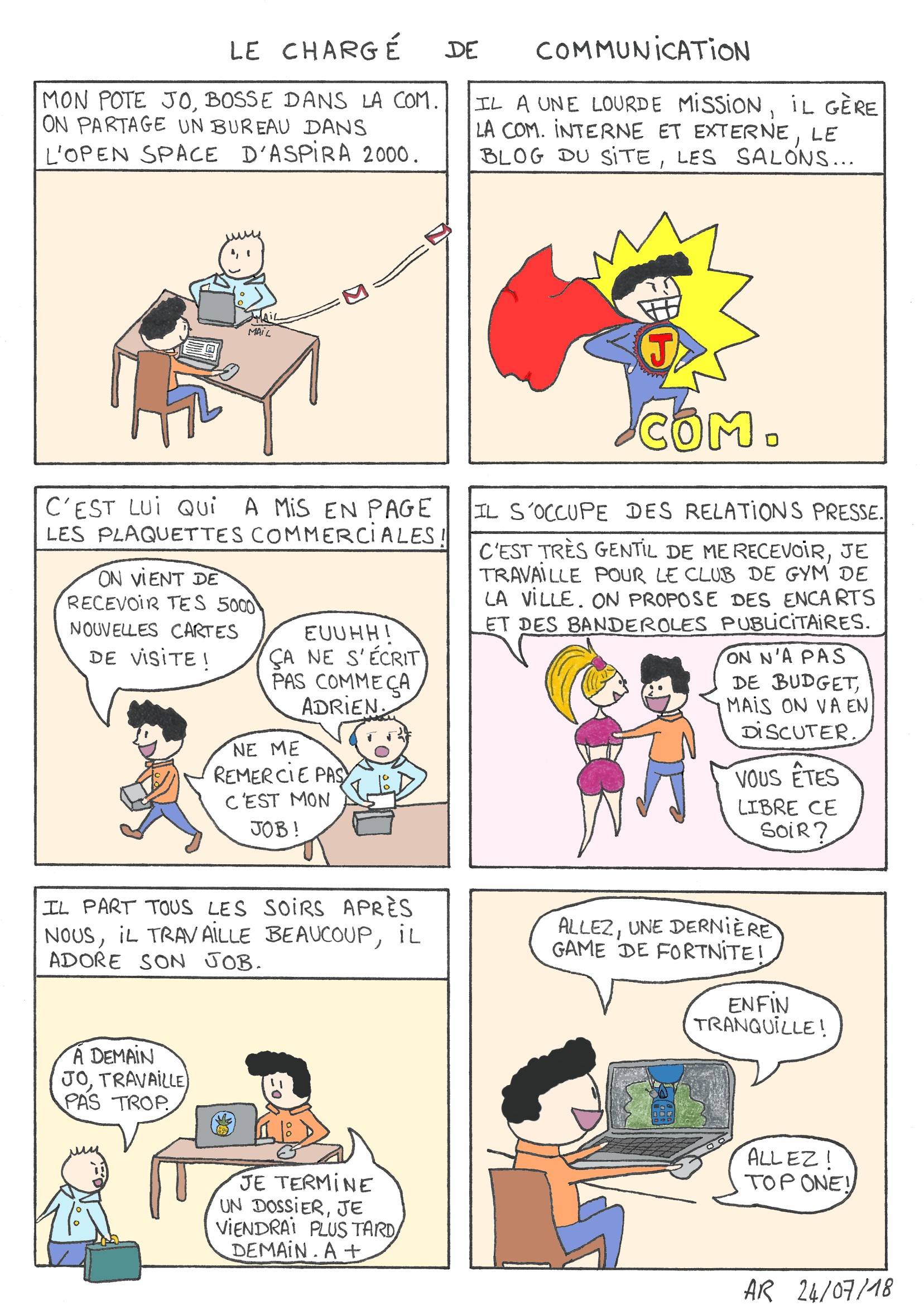 Aussi sympathique qu’incompétent, le chargé de communication s’occupe de la com. institutionnelle, du graphisme, des catalogues, du salon, du respect de la charte graphique, des logos et de bien d’autres choses au sein de l’entreprise.