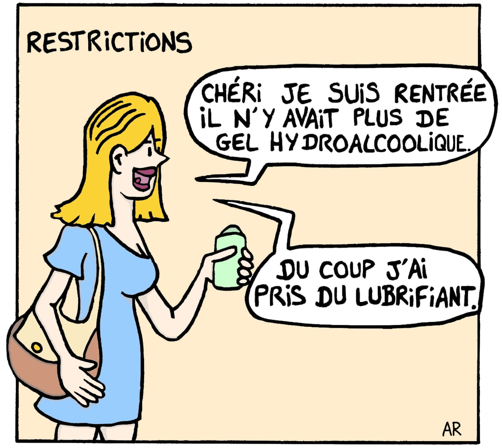 « Chérie ! Il n’y avait plus de gel hydroalcoolique au magasin ! »